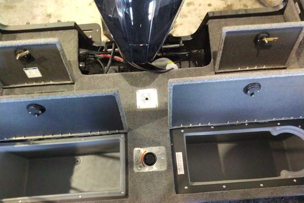 • In-floor center trolling battery storage compartment for up to 3 batteries