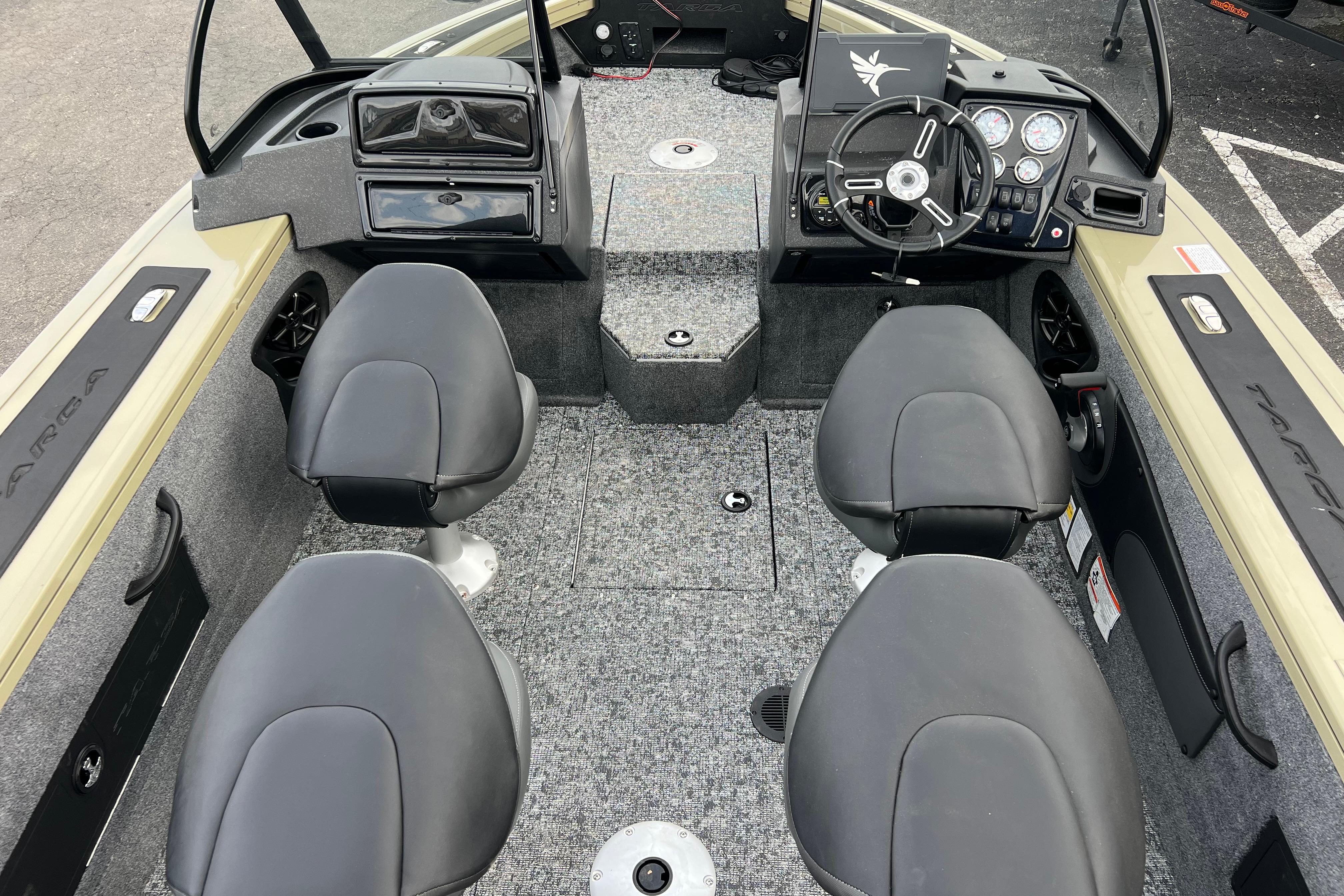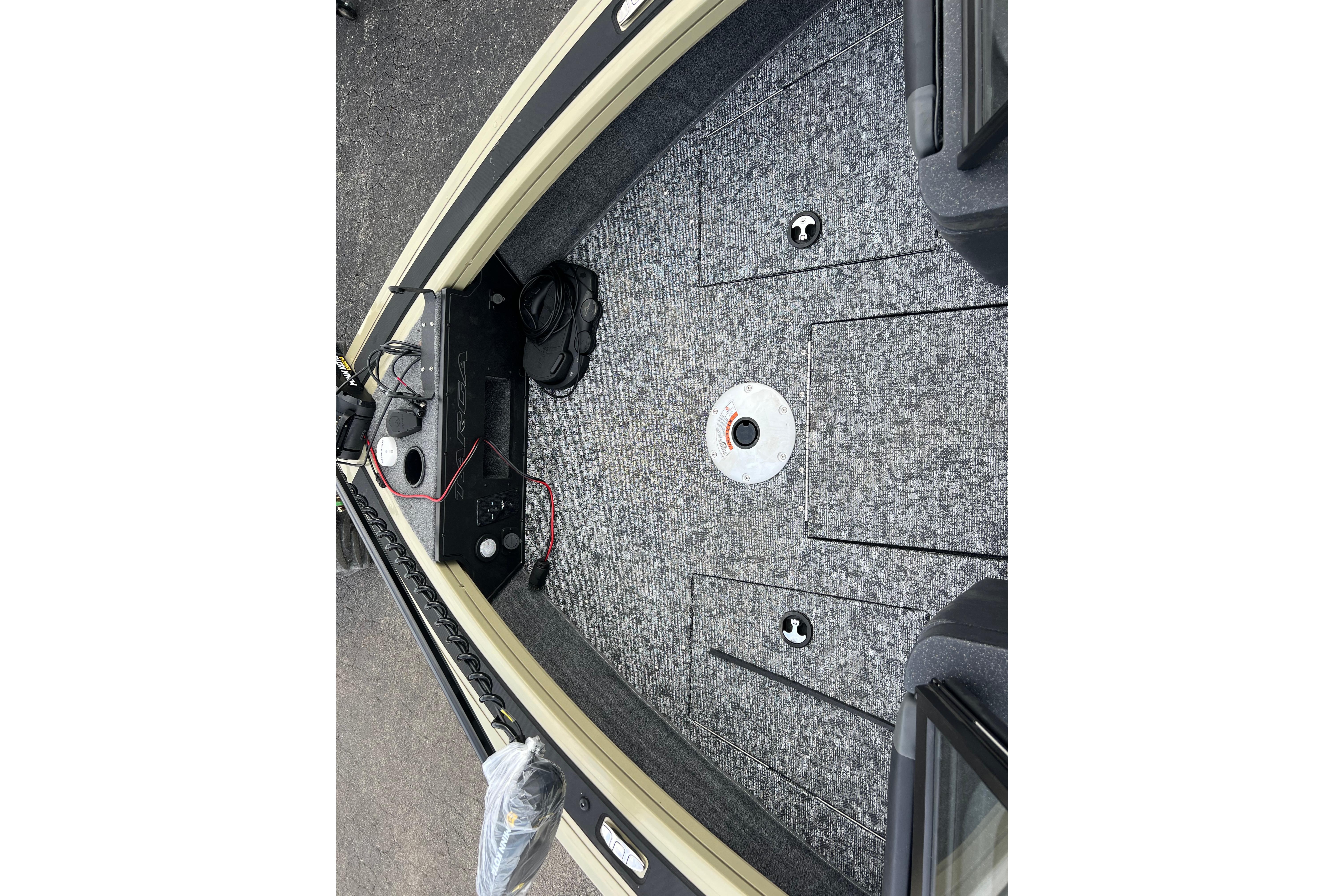 • Bow panel w/trolling motor receptacle, 12V outlet, bow aerator switch & trim switch