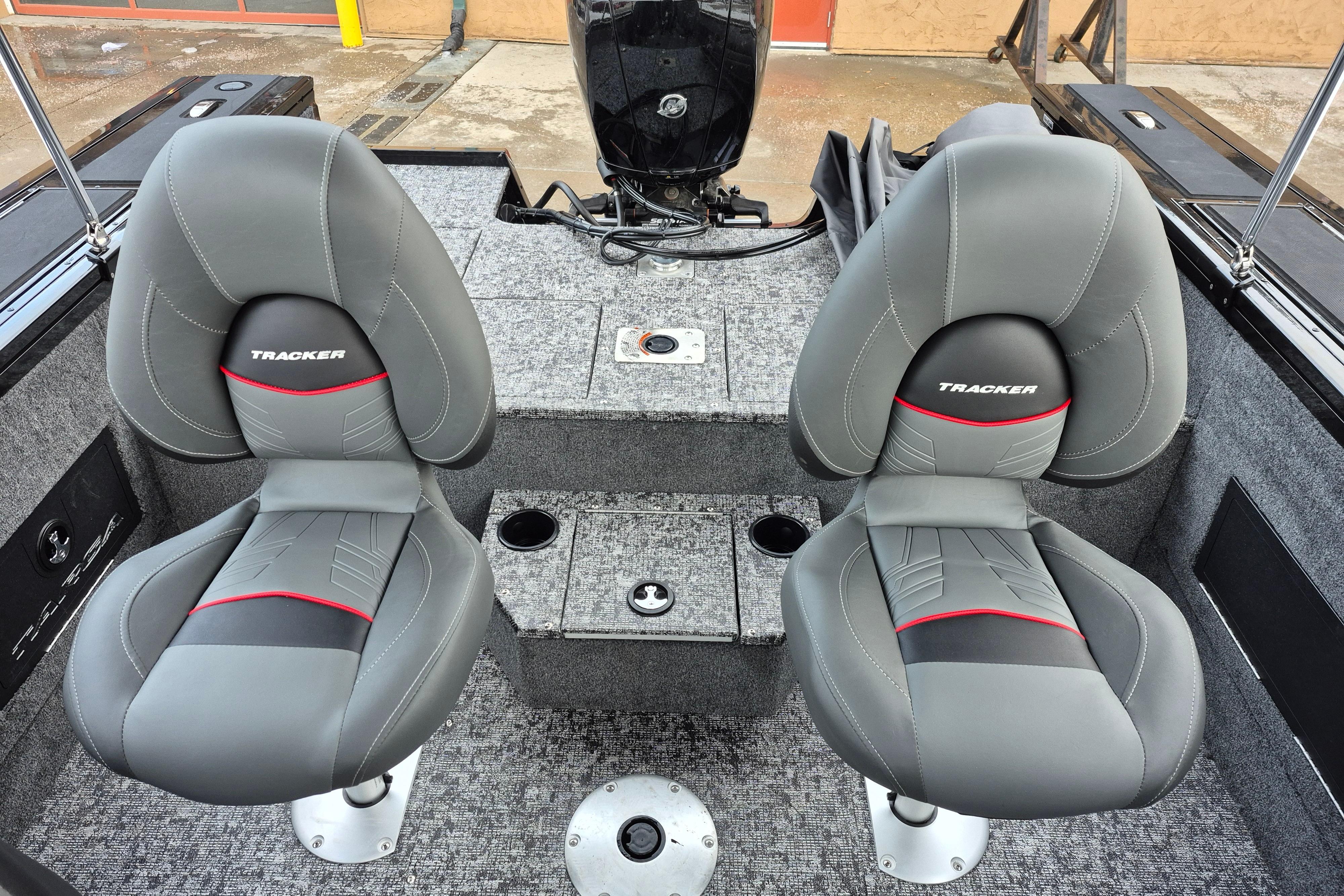 Imagine a boat that's not just tough but a true warrior of the waters, ready to conquer the most challenging conditions. The TRACKER® TARGA™ V-18 WT is that and more! With a .125”-thick marine-grade aluminum hull, a welded-in stringer system, and a box-beam transom, this beast is built to handle whatever nature throws its way. Step inside the cockpit of the TARGA V-18 WT and discover a paradise for anglers. Three rod compartments stand at the ready, while a whopping 49-gallons livewell capacity ensures your catches stay fresh and lively. Powered by a Mercury® FourStroke outboard engine, accompanied by a 24V Minn Kota® trolling motor and a cutting-edge Lowrance® fishfinder. It's a powerhouse of technology and performance, ready to take you on the angling adventure of a lifetime. And to top it off, the TARGA V-18 WT is backed by the TRACKER PROMISE, offering the most robust factory warranty in the realm of aluminum boats. So go ahead, dive into the waters with confidence, knowing that your vessel has your back, no matter what challenges come your way.