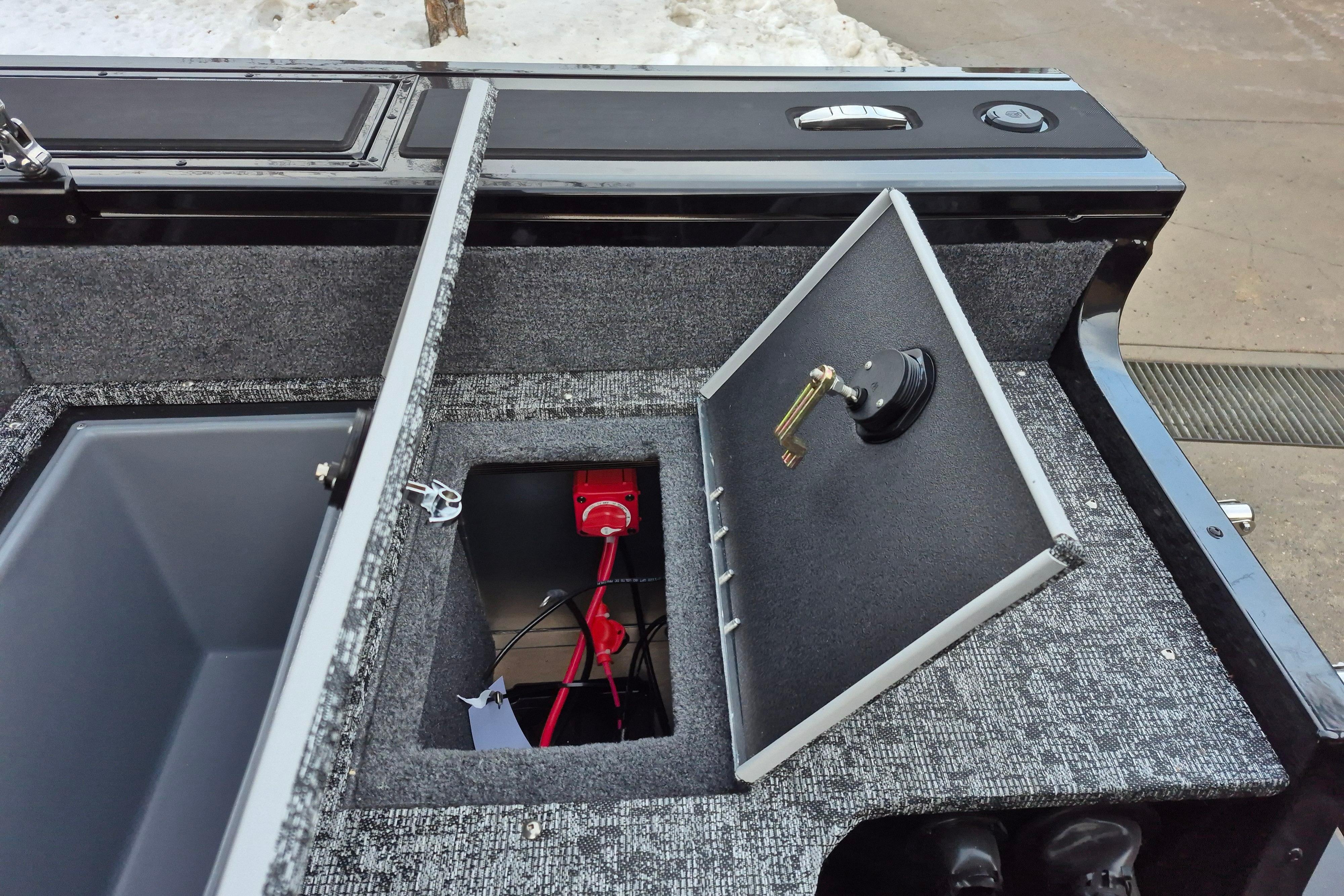 • In-floor center trolling battery storage compartment for up to 3 batteries