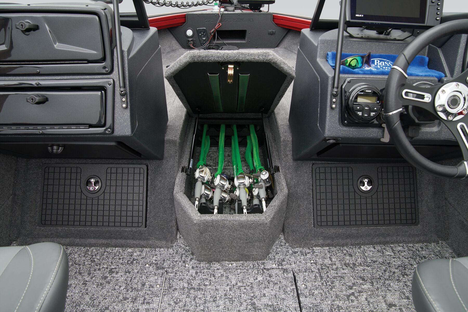 • In-floor center trolling battery storage compartment for up to 3 batteries