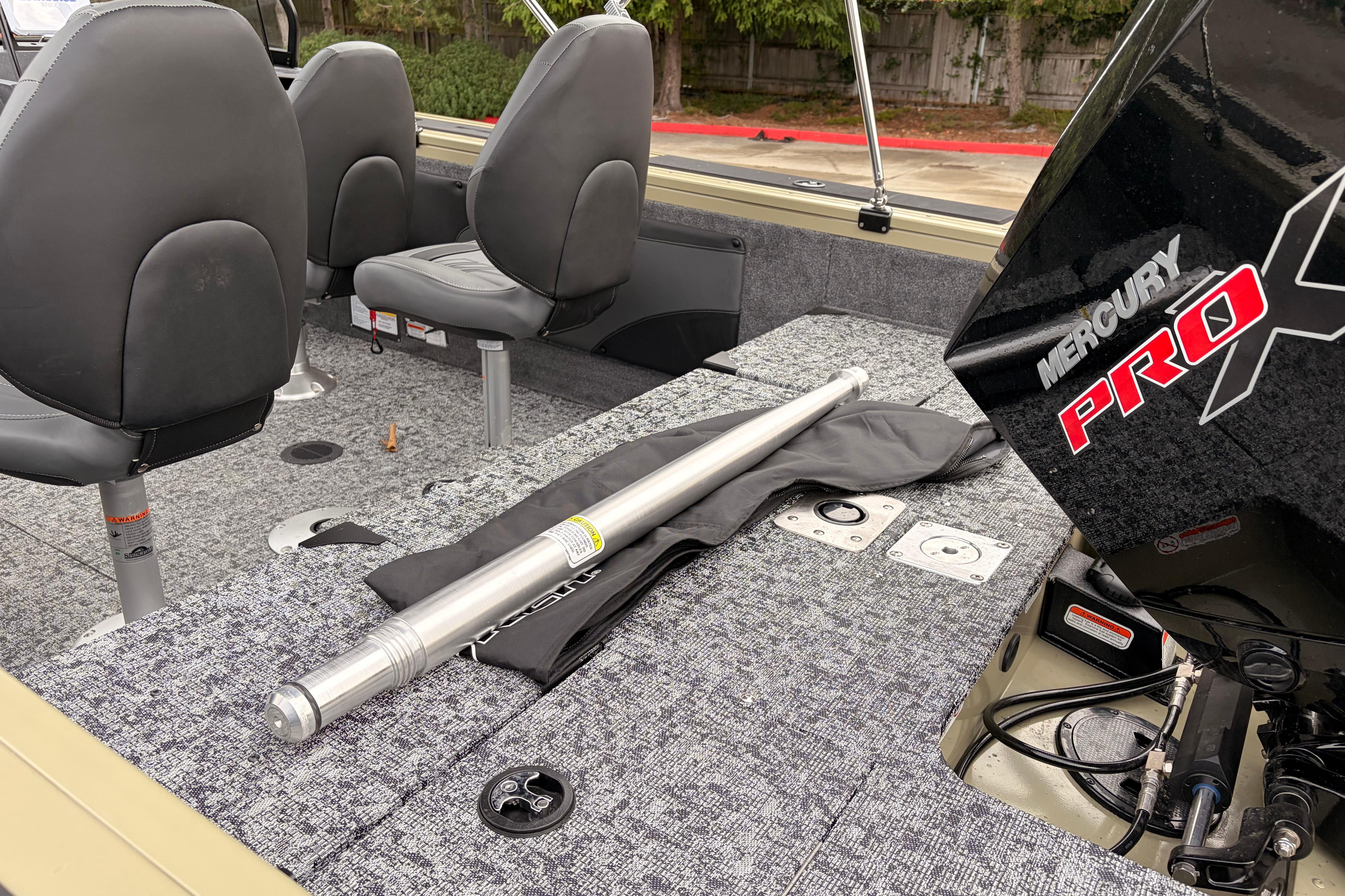 • Bow center lockable rod box w/organizer for spinning & baitcast rods to 7' 6" (2.29 m)