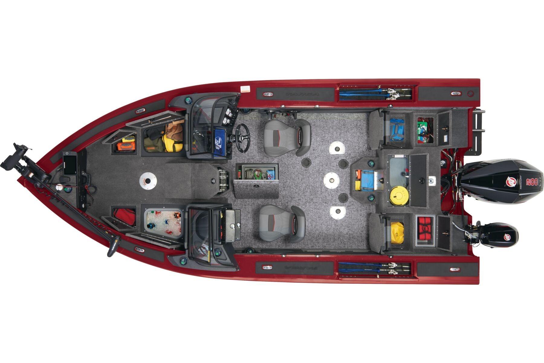 • Aft deck starboard rotomolded storage for fourteen 3700-series tackle boxes