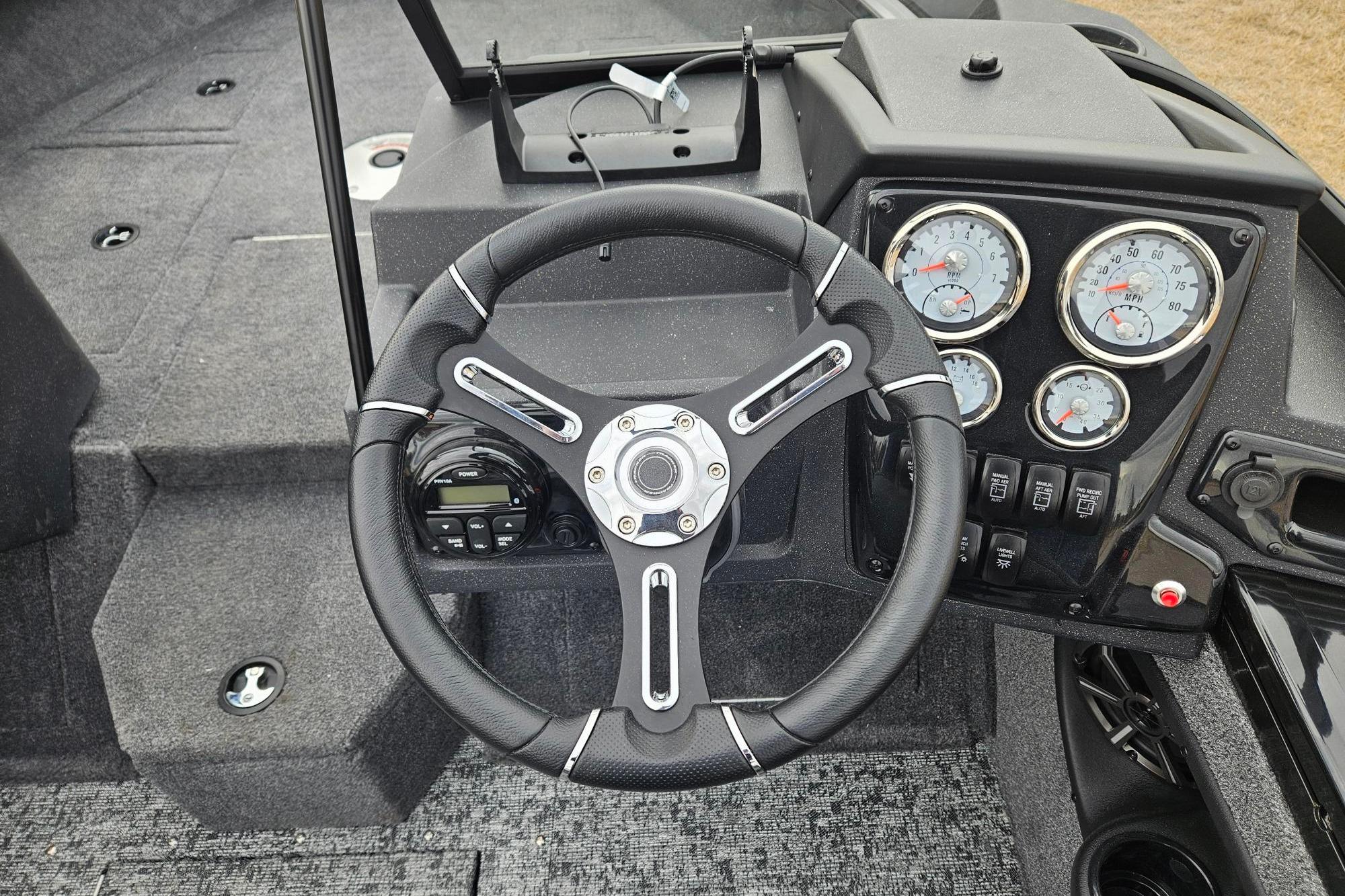 • Bow panel w/trolling motor receptacle, 12V outlet, bow aerator switch & trim switch