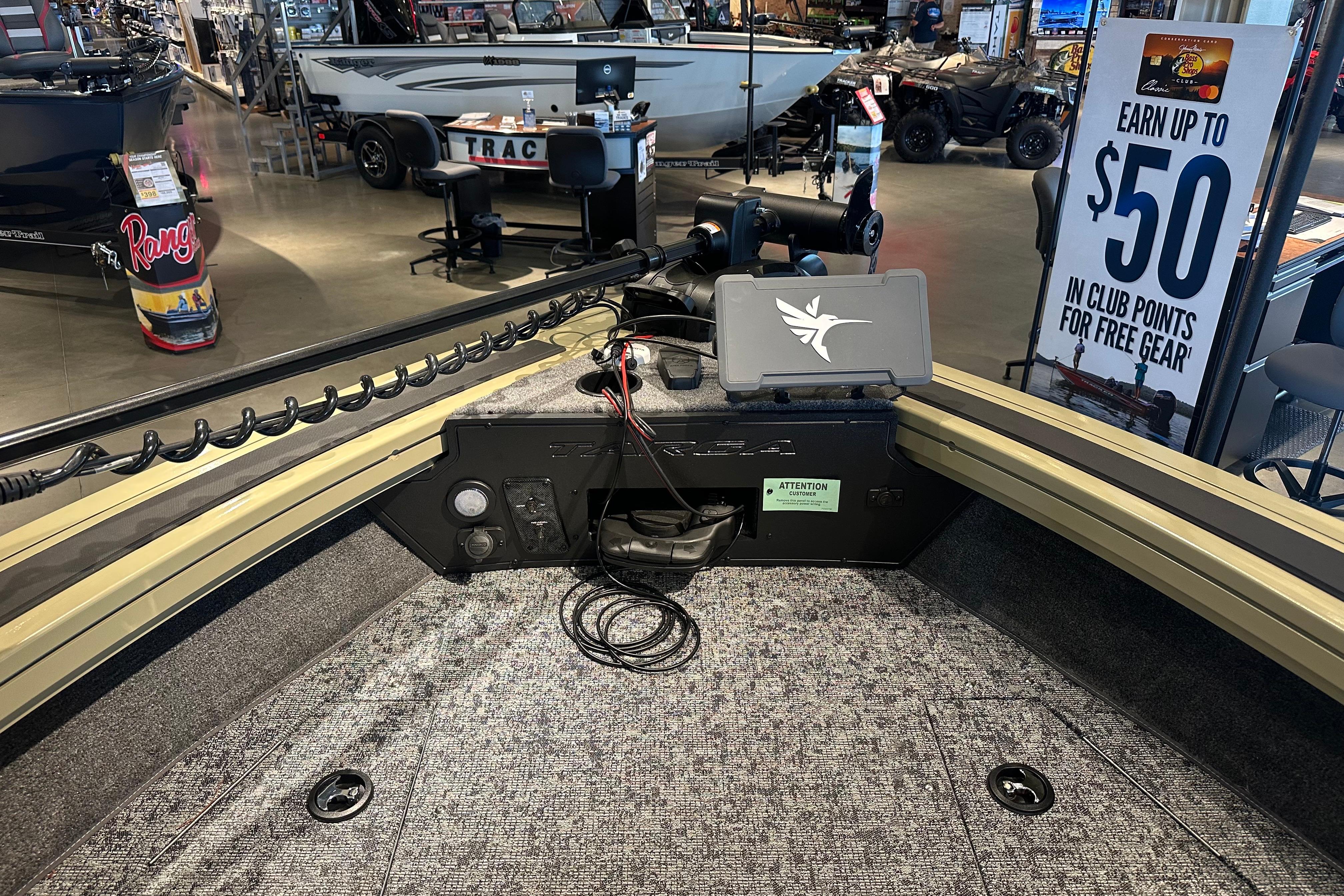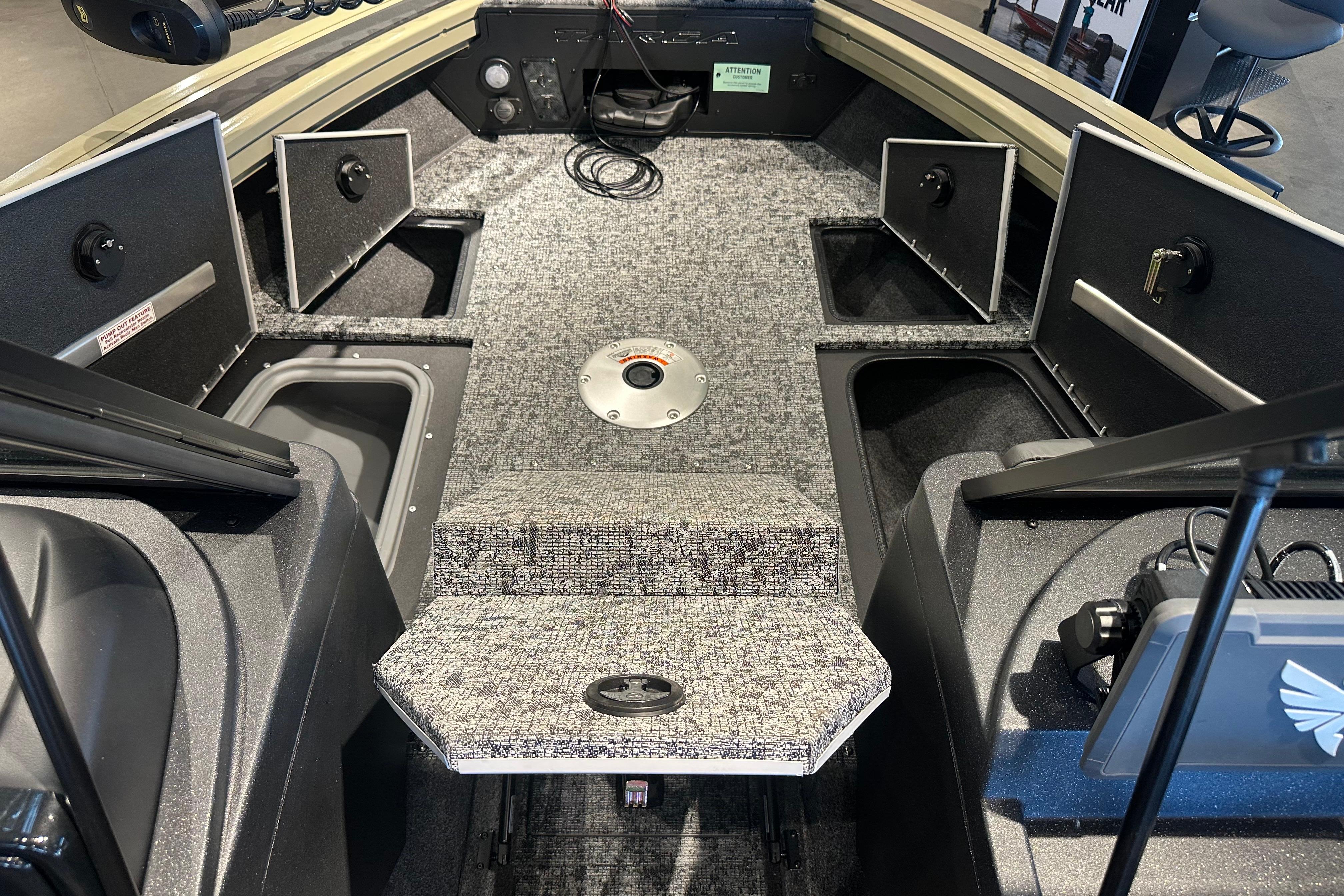• Bow panel w/trolling motor receptacle, 12V outlet, bow aerator switch & trim switch