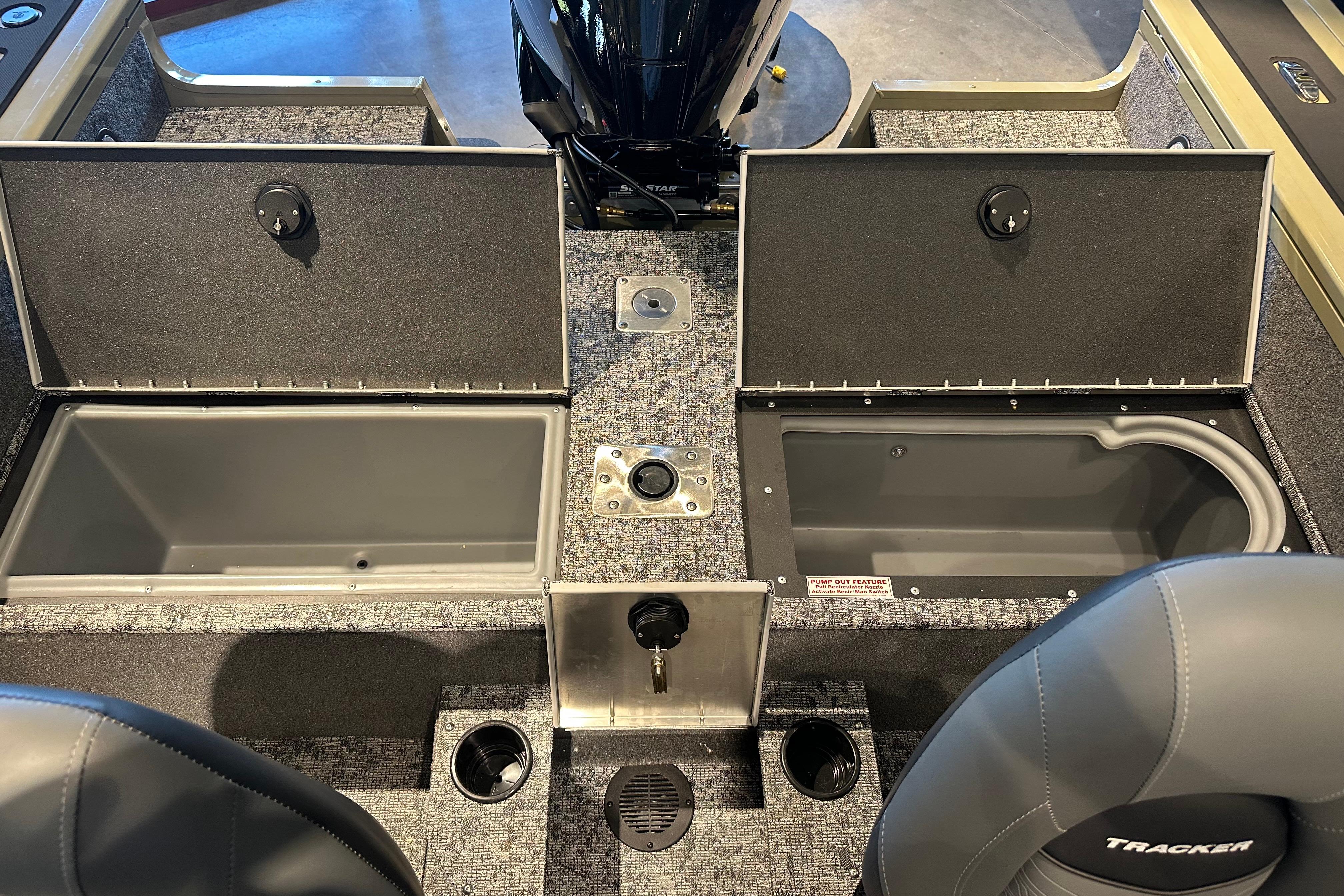 • Lighted bow 19-gal. (71.92 L) aerated livewell w/timer, recirculator & pump-out system